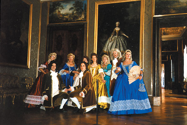 Die Gruppe vor dem Bild von Friedrike Sophie von Württemberg im Ludwigsburger Schlosses, das als Vorlage für die Kostüme der Gruppe diente.