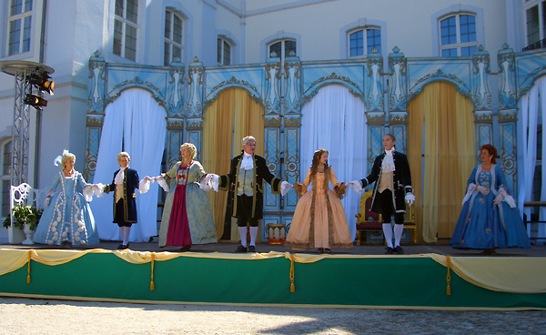 Zwischen den Tänzen wurde historische Zusammenhänge erläutert und Geschichten von den damaligen Höfen erzählt. |