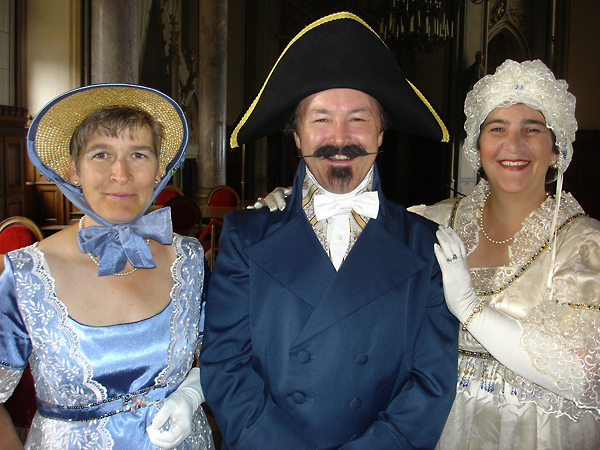 Ein Cavalier, begleitet von zwei Damen. Das Trio hatte sichtlich Freude, sich dem Fotografen zu stellen. |