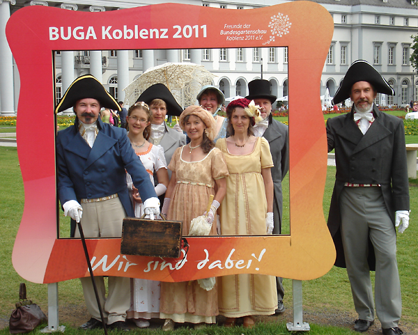 In der historischen Kulisse des kurfürstlichen Schlosses traf die Gruppe auf Kaiserin Augusta, die in Koblenz gelebt und gewirkt hatte. Aus Anlass ihres 200. Geburtstag wurde das Augusta-Fest ausgerichtet. |