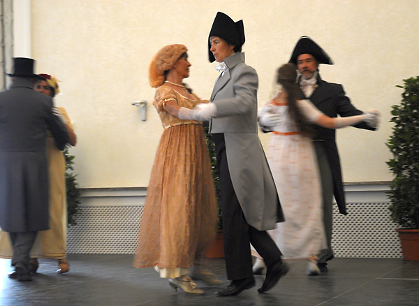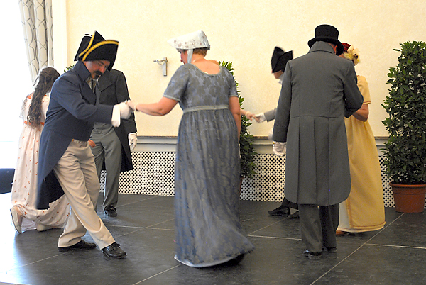 Zeitgenössische Kostüme und eigene Tanzforschung bilden die Basis für ein historisch korrekte Aufführung. |