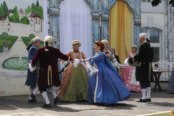 Drei Paare der Gruppe bei "La Pillnitz", ein Tanz vom Sächsischen Hof. |