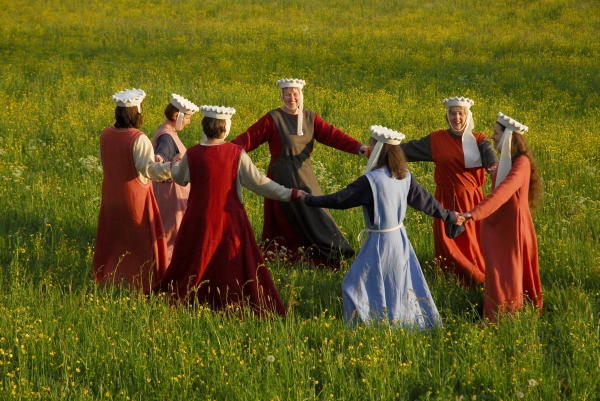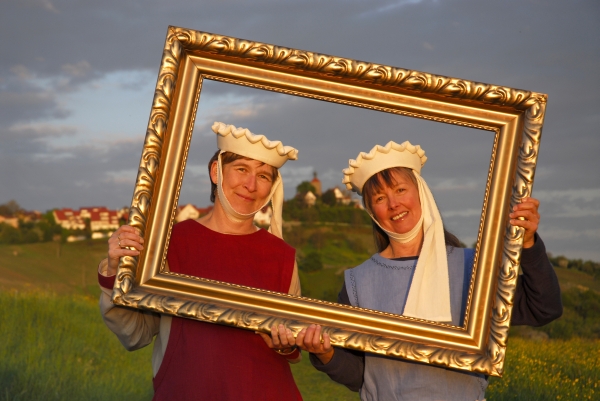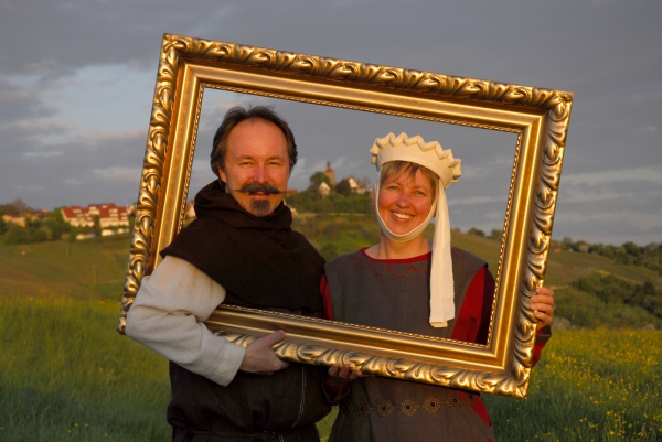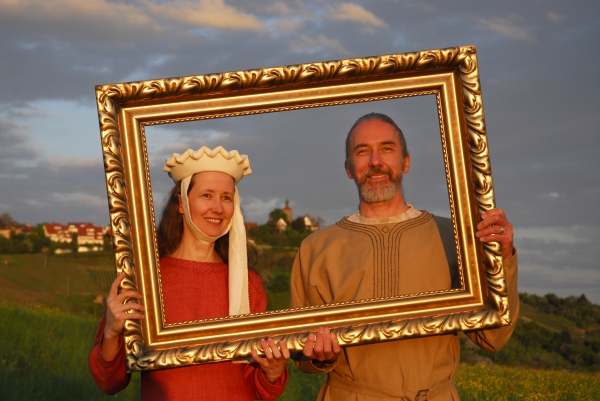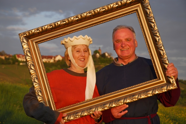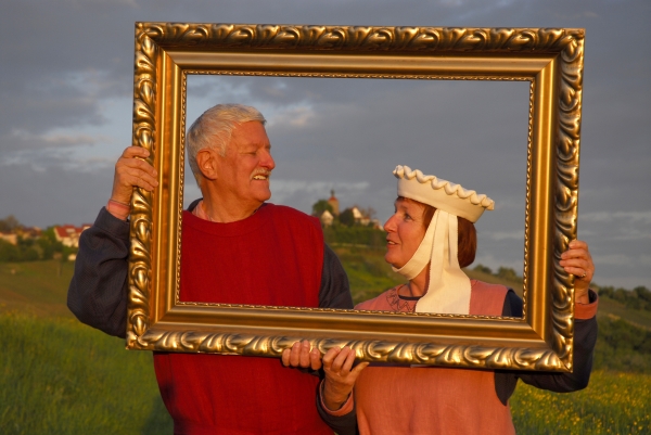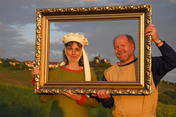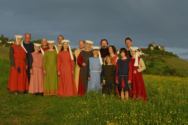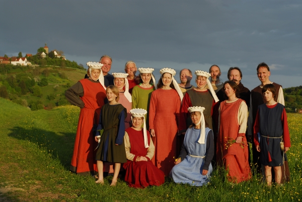 Anfang Mai traf sich die Schlosstanzgruppe vor einer Probe für ein Fotoshooting in den neuen Mittelalter-Kostümen, die extra für die 800-Jahr-Feier in Winnenden beschafft wurden. |