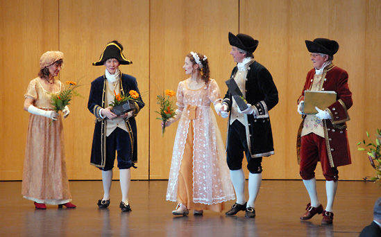 ![]() Die Paare stellen sich in den historischen Kostümen der napoleonischen Zeit dem Publikum vor. |