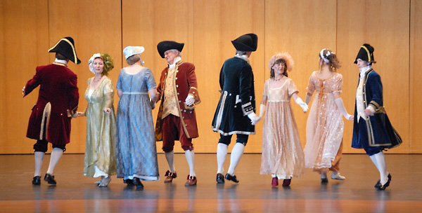 ![]() Die Gruppe bei einem Kontratanz mit dem Namen "La Napoleon", benannt nach dem damaligen französischen Kaiser. |