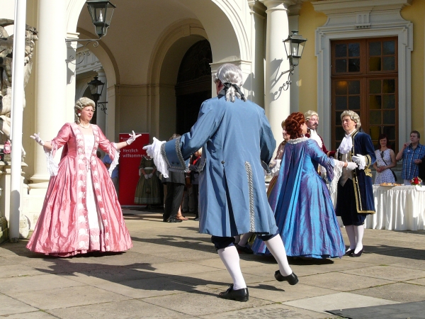 Nach einem Sektempfang wagten 4 Paare der Schlosstanzgruppe noch ein paar Tänzchen. |