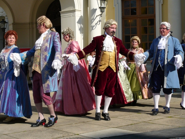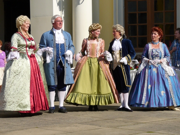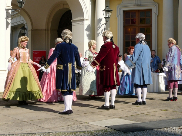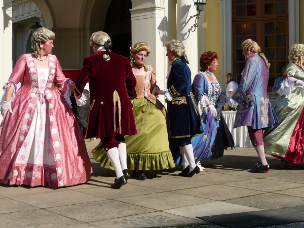 Die Damen und Herren in prachtvollen Kostümen des Rokoko.... |