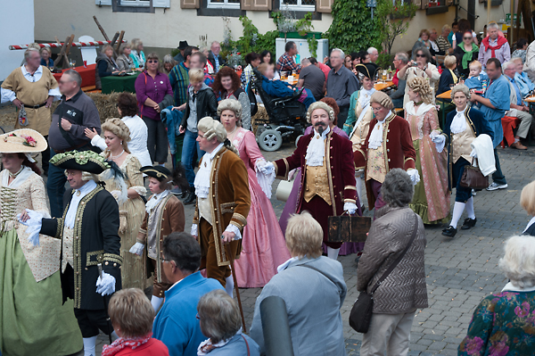 Nicht nur die Akteure auf der Bühne sind in Engers in Kostümen unterwegs, auch das Publikum ist passend gewandet. |